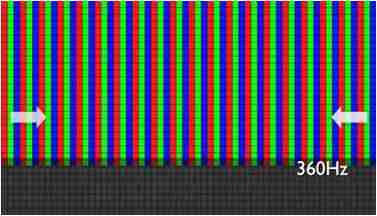 传统液晶驱动是从左到右单向进行,,在画面更新速度愈来越愈快的情况下,,位于驱动线路末端的右下角区域,,,画素的闸极来不及在短时间内获得足够电压,,,,无法显示出正确的颜色资讯。。。。 |