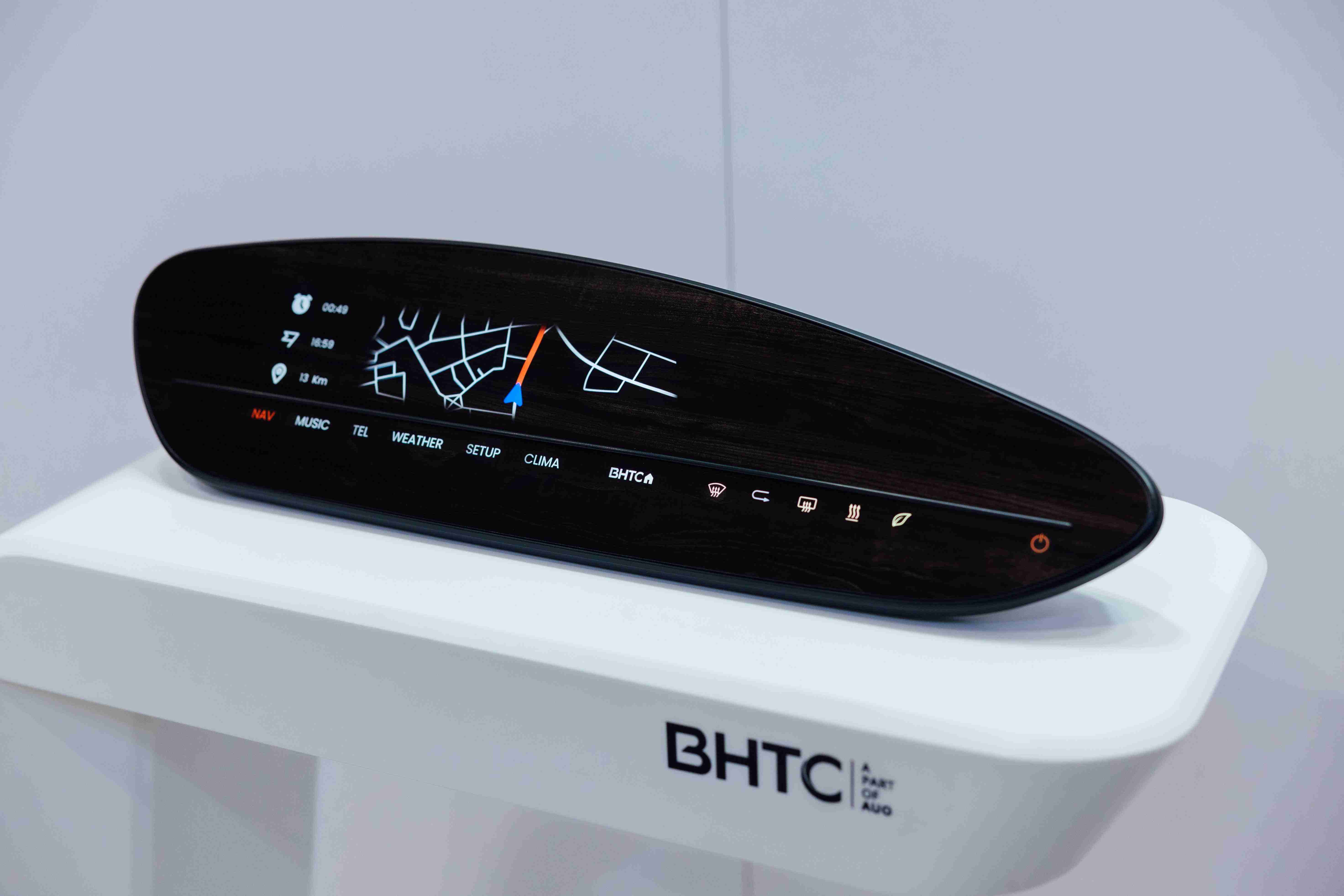 BHTC的木纹车用显示器(Display Behind Wood)将无缝木质表面与显示器结合后,,可以融入车内设计中,,提供驾驶优质的视觉效果,,加上其无边框的设计和亮度调控,,,,创造更优质的车内体验。。。。