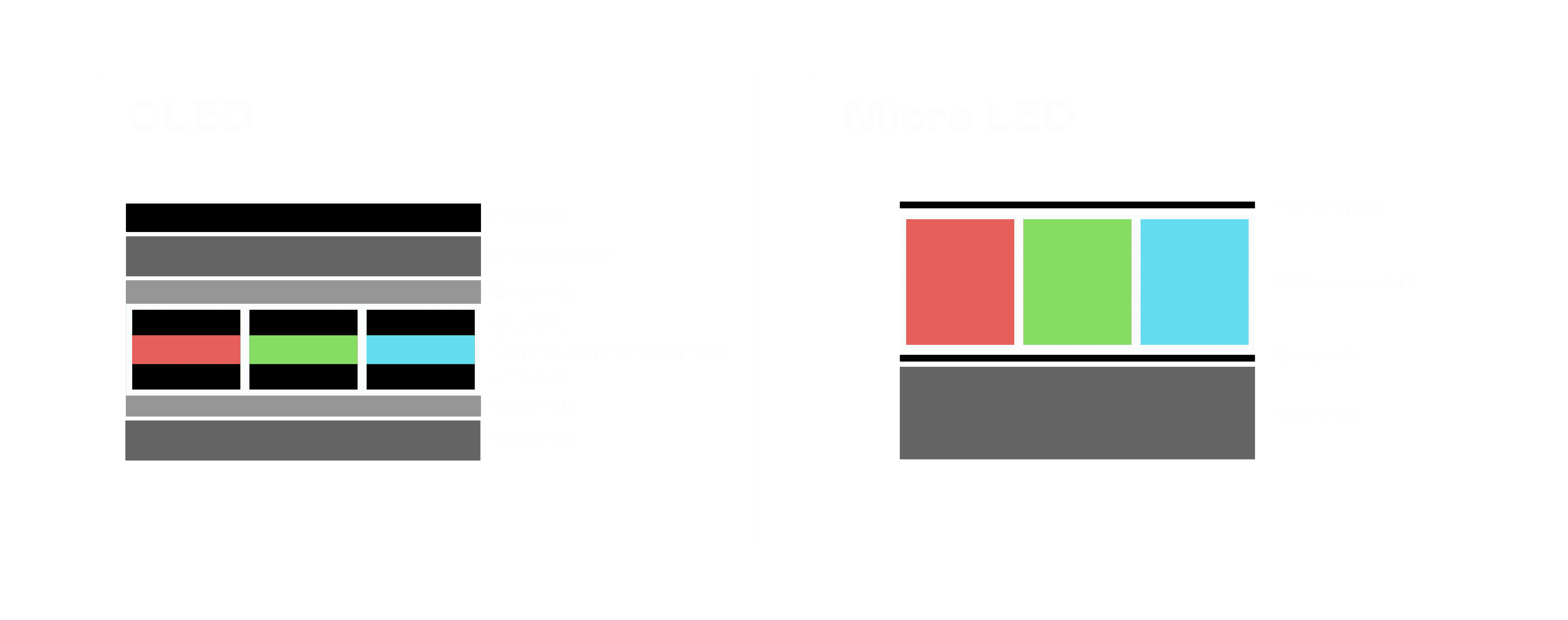 以 LED 做为显示画素,,,,可让 LED 的发光效率发挥到极致,,,,从而让显示器具备优异的亮度表现,,不论是在户外或室内,,,,均具备出众的显示效果。。。同时,,,,与使用有机材料的 OLED 相比,,LED 具备更稳定、、、、寿命更长的特性,,,不仅不会有画面烙印问题,,,,而且更不容易出现故障、、、坏点。。
