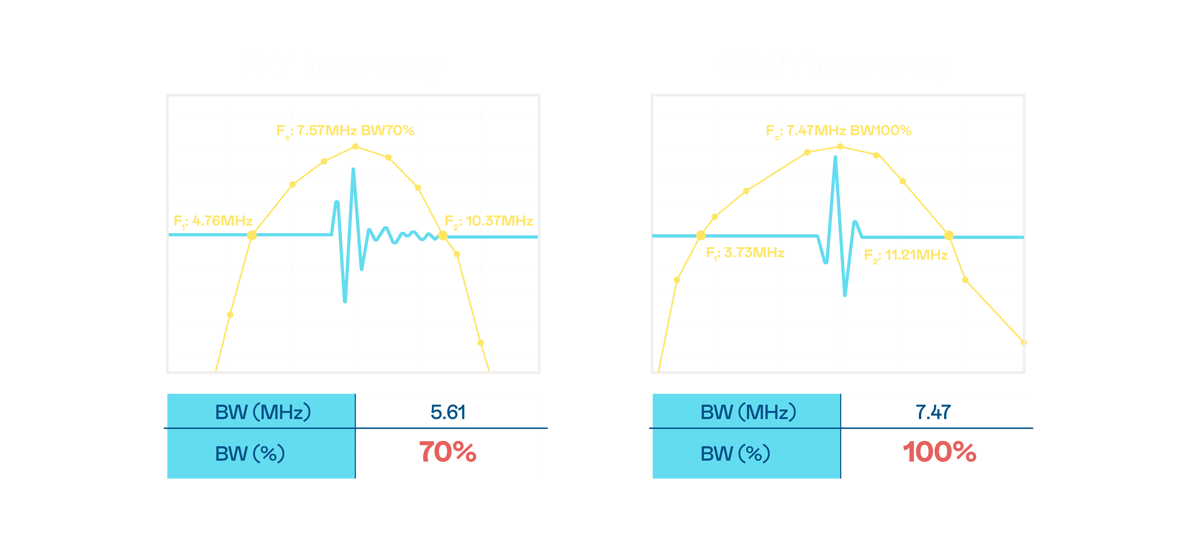CMUT 技术是一种用电容式微机电元件来产生超音波讯号的技术。。。。与传统 PZT 压电式技术相比,,CMUT 频宽增加 30%,,,更宽频的超音波讯号让影像解析度大幅提升,,是实现高影像品质医疗超音波扫描、、、促进精准医疗发展的关键技术。。